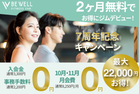 7月限定!最大22,000円お得にジムデビュー|BE WELL夏の特別キャンペーン