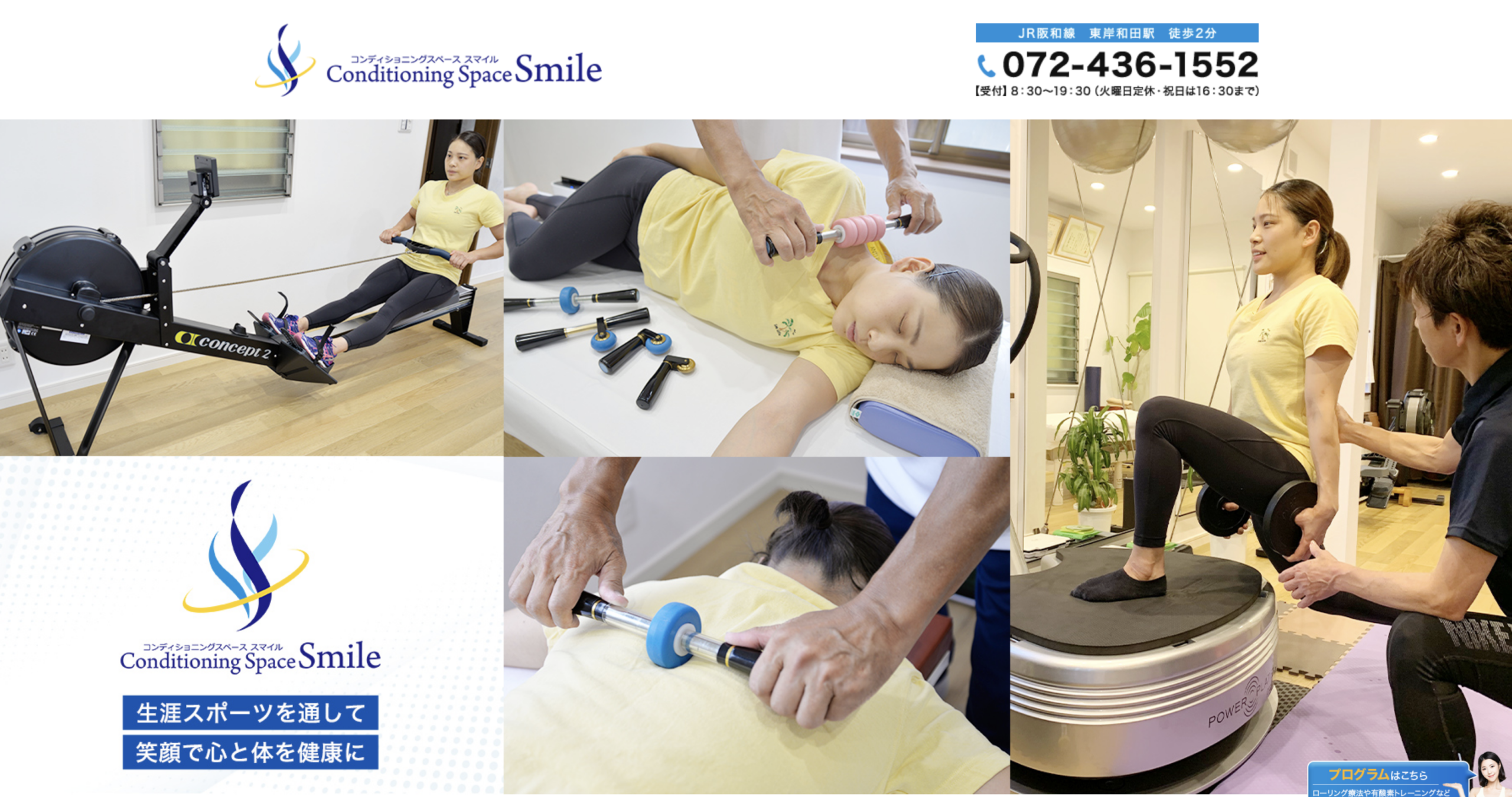 コンディショニングスペース スマイルは、パワープレート(振動マシン)を活用したトレーニングと施術を提供する地域密着型のジムです。